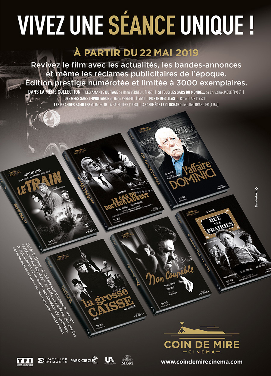 Cela n'a pas été sans mal mais ÇA Y EST ! Grâce à ce projet de 2ème vague de titres, nous avons fouiné dans beaucoup d'archives notamment celles de la R.A.T.P. et de la S.N.C.F. pour LE TRAIN et LA GROSSE CAISSE, rencontré des collectionneurs, des auteurs, des fans de Gabin, de Bourvil (jusqu'en Normandie), de Michel Audiard et de Michel Simon (aux Cinglés du Cinéma), nous avons eu la chance de discuter avec Mr Jean Bourduge, affichiste de LA GROSSE CAISSE, toujours en forme et en duo avec Mr jean Jouineau puisqu'ils habitent l'un à coté de l'autre (quelle belle et longue amitié !), nous avons aussi eu l'immense privilège d'être invités à la projection de RUE DES PRAIRIES dans le magnifique auditorium de TF1 à Boulogne où nous avons eu l'honneur de rencontrer les enfants de Michel Audiard et de Denys De La Patellière.